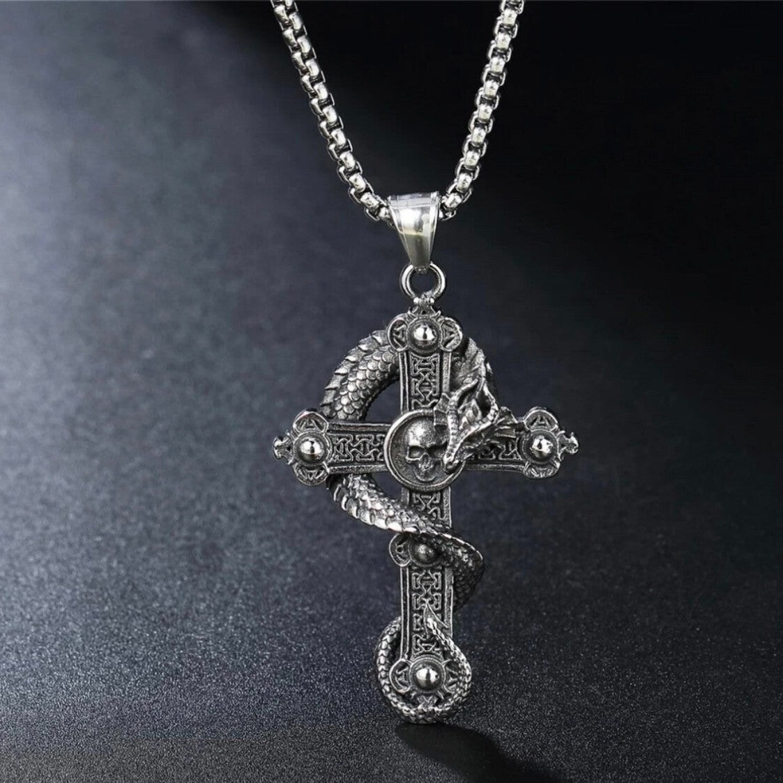 Gothic Skull Biker Cross Dragon Stainless Steel Pendant Necklace