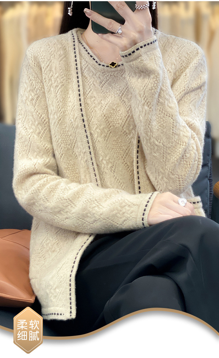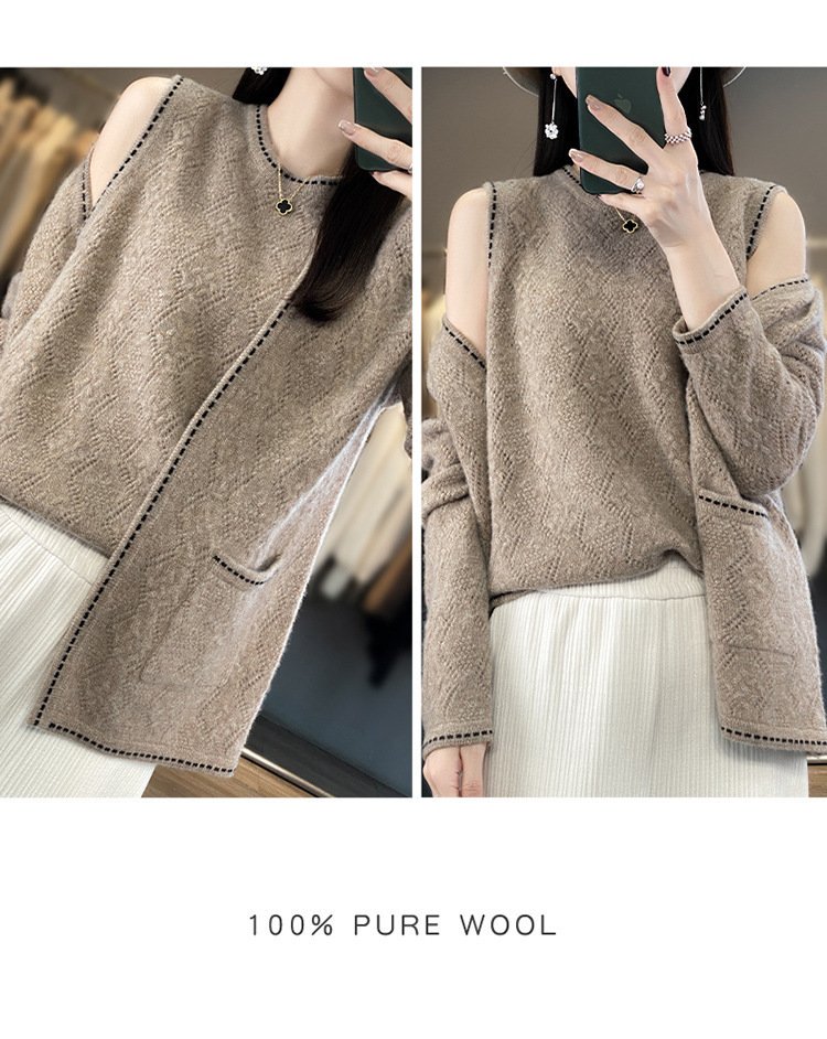 2025 New handmade crochet top with 100% wool sweater loose vest cardigan two-piece sweater set*