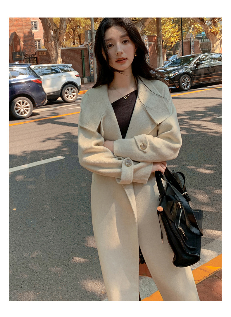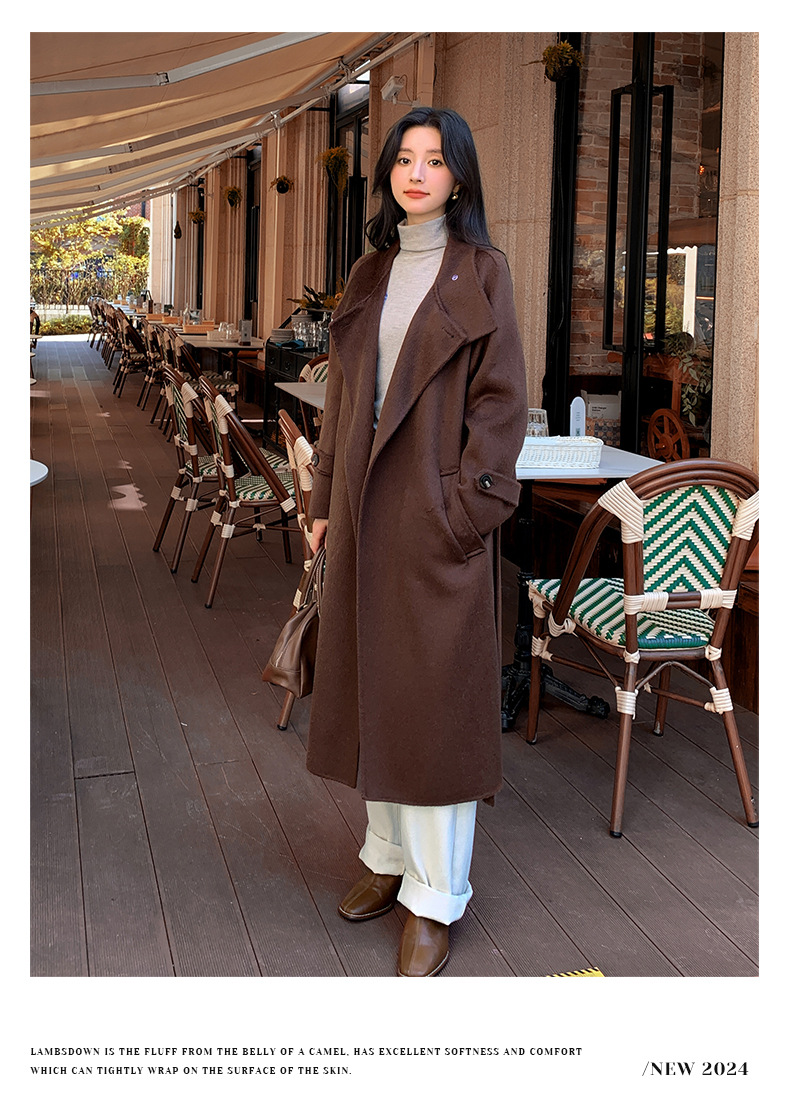 New Long Double sided Camel Velvet Coat Korean Edition Suit Collar Autumn/Winter Woolen Coat