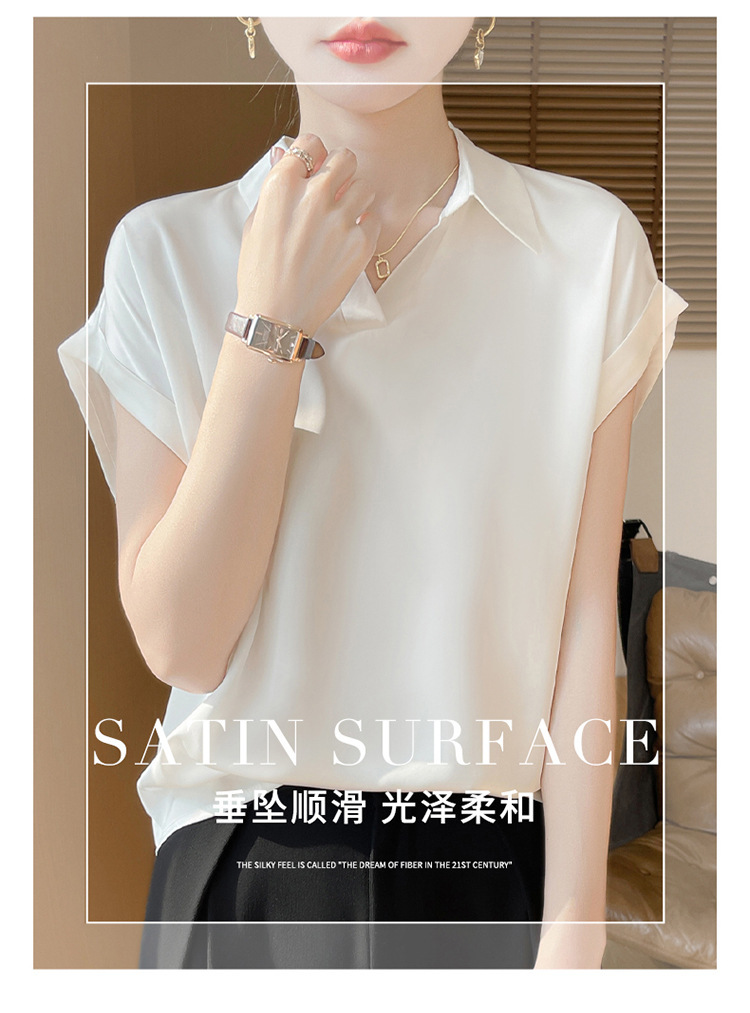 2025 New satin short sleeved shirt for women, casual, fashionable and versatile French shirt*