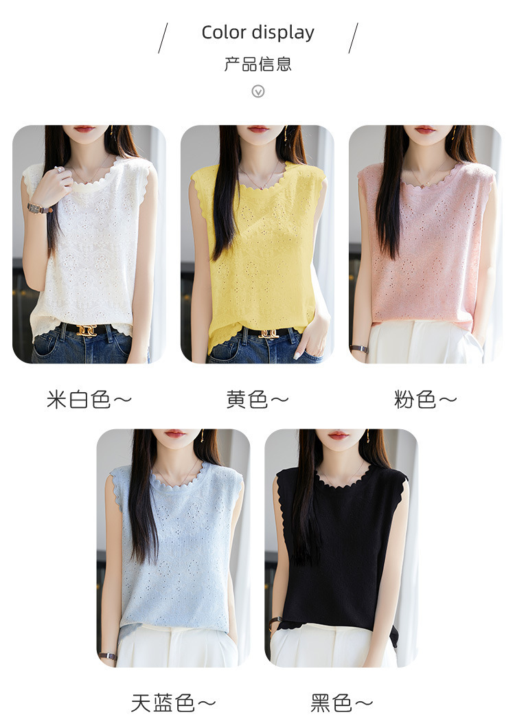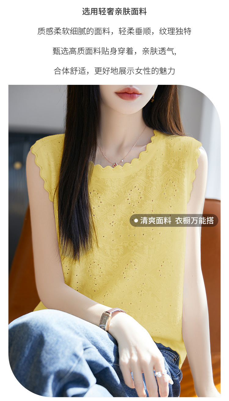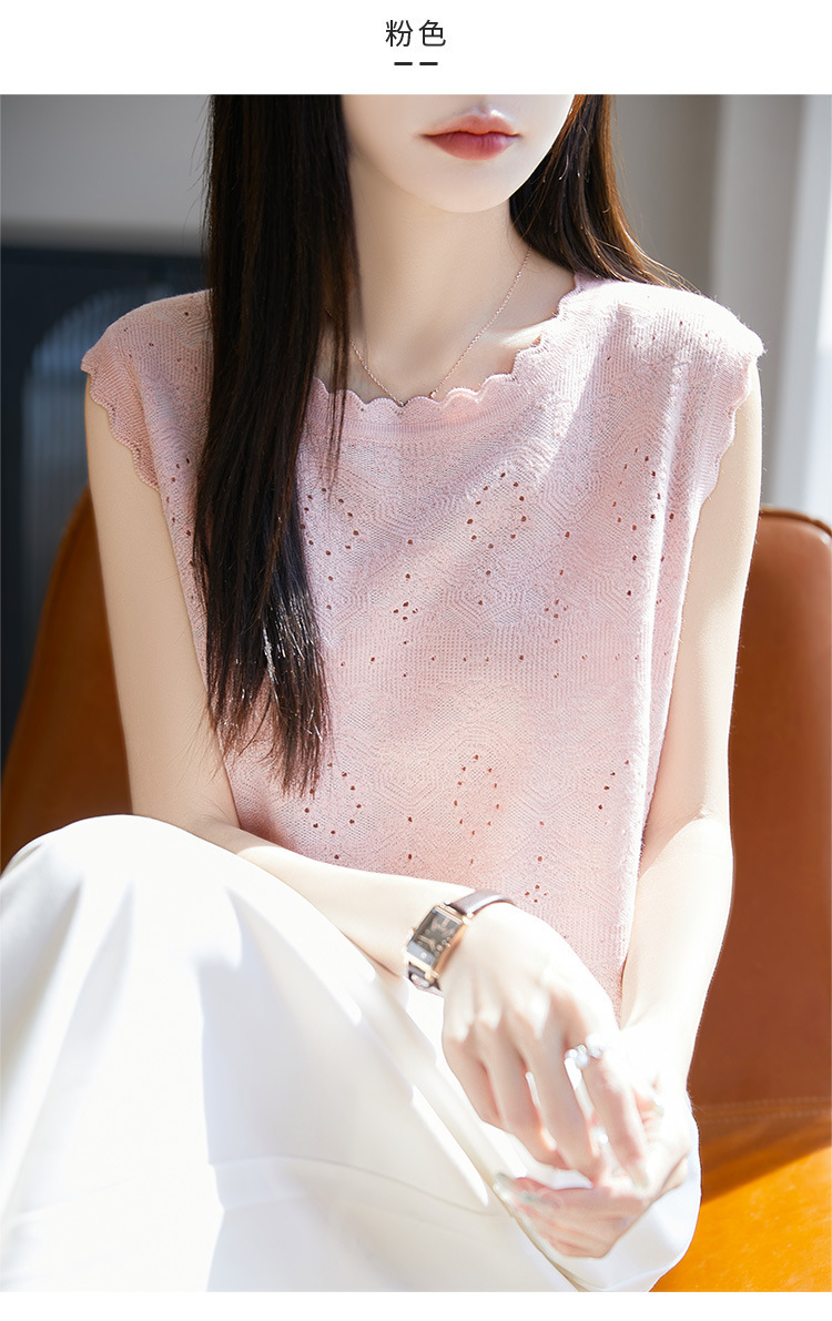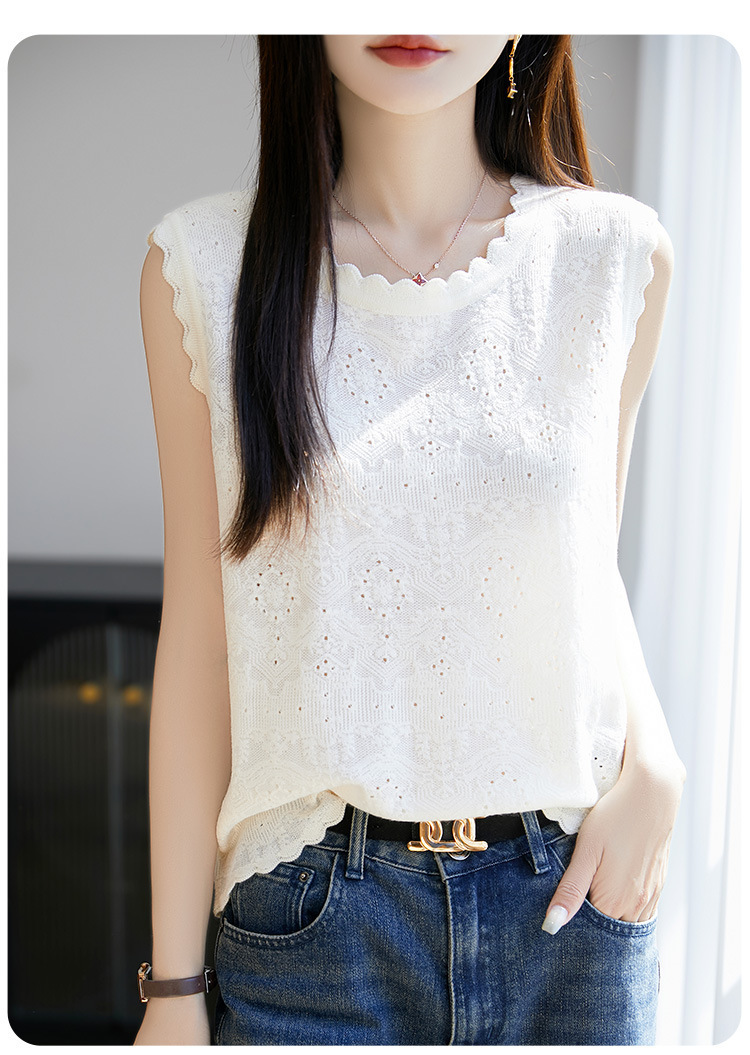 Women's woven wool lace round neck knitted vest with hollowed out jacquard sleeveless base sweater*